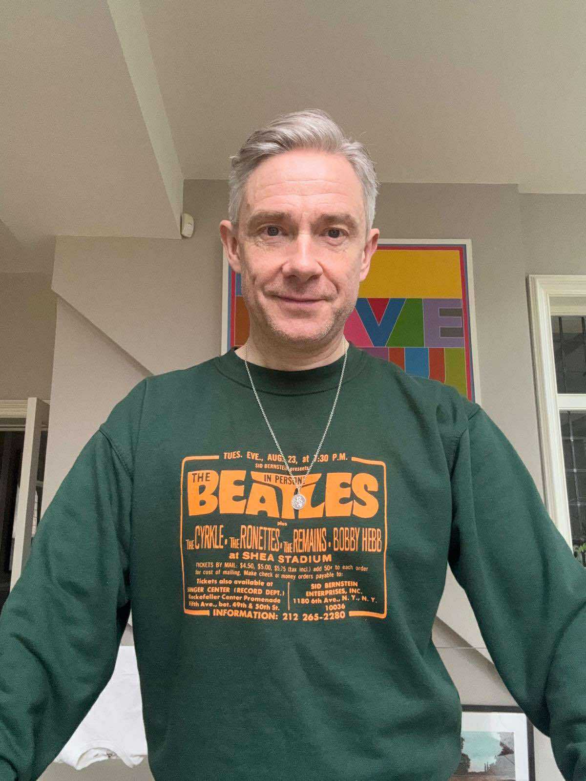 Our Beatles design is back! This time on a great dark green sweatshirt, and in Rubber Soul orange print!