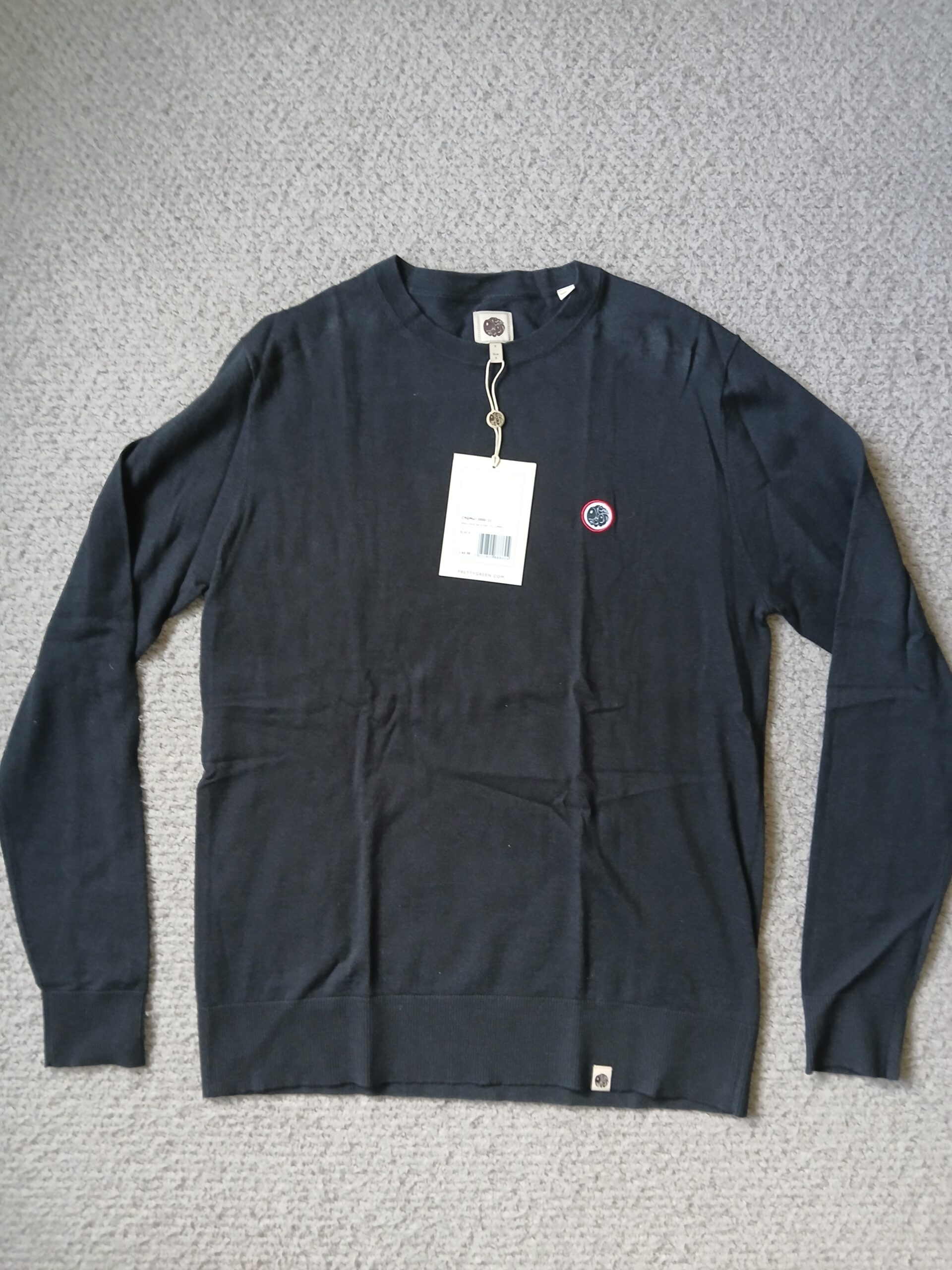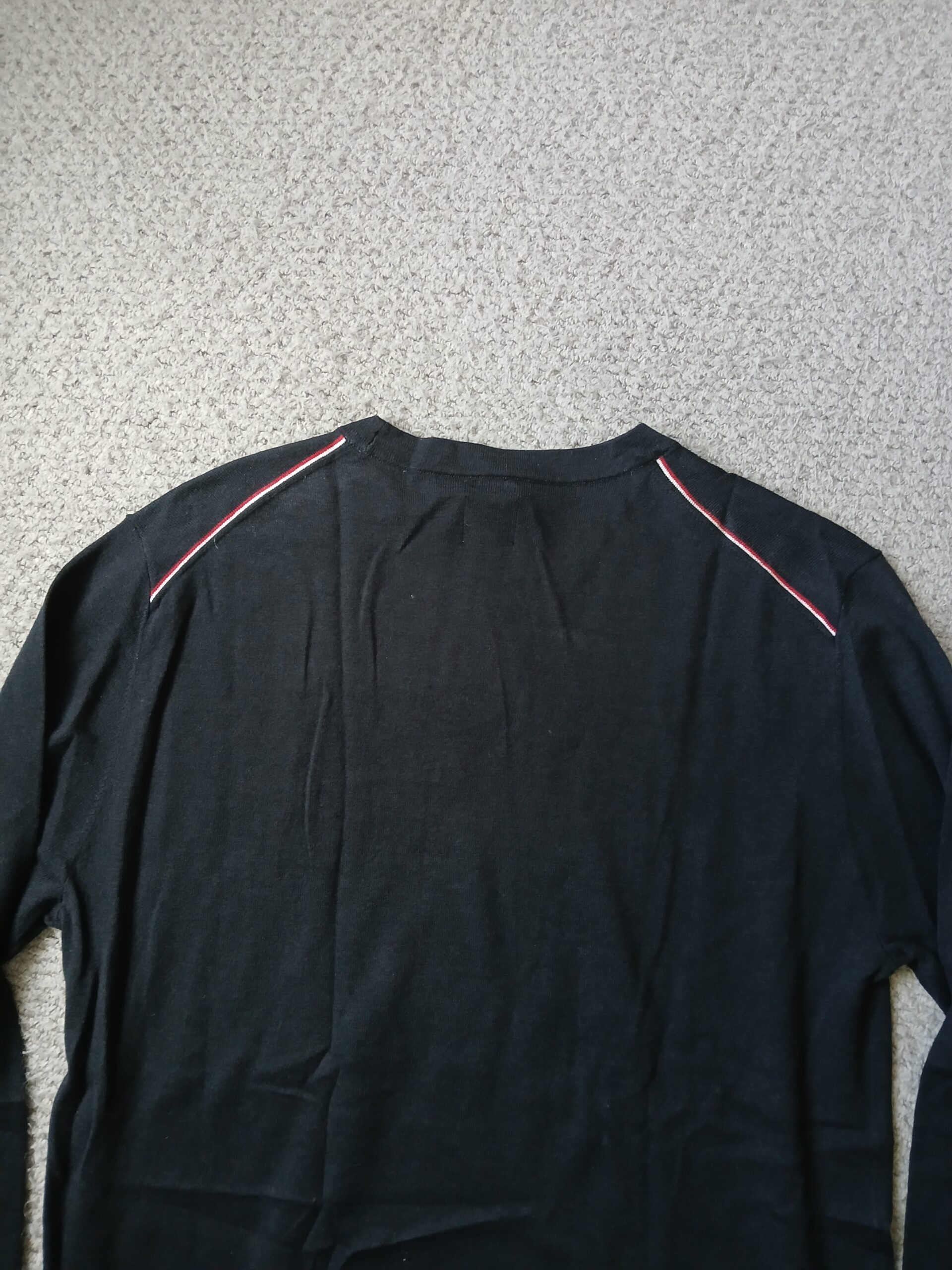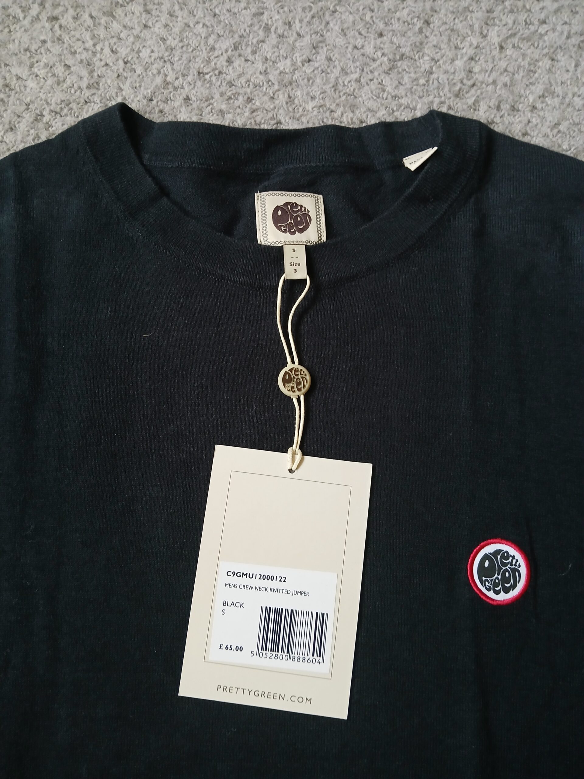 Pretty Green fine wool jumper in small. Black, with 2 small stripes on back, which is a nice touch. Was £65… Brand new with tags deadstock. Price includes postage and packing.