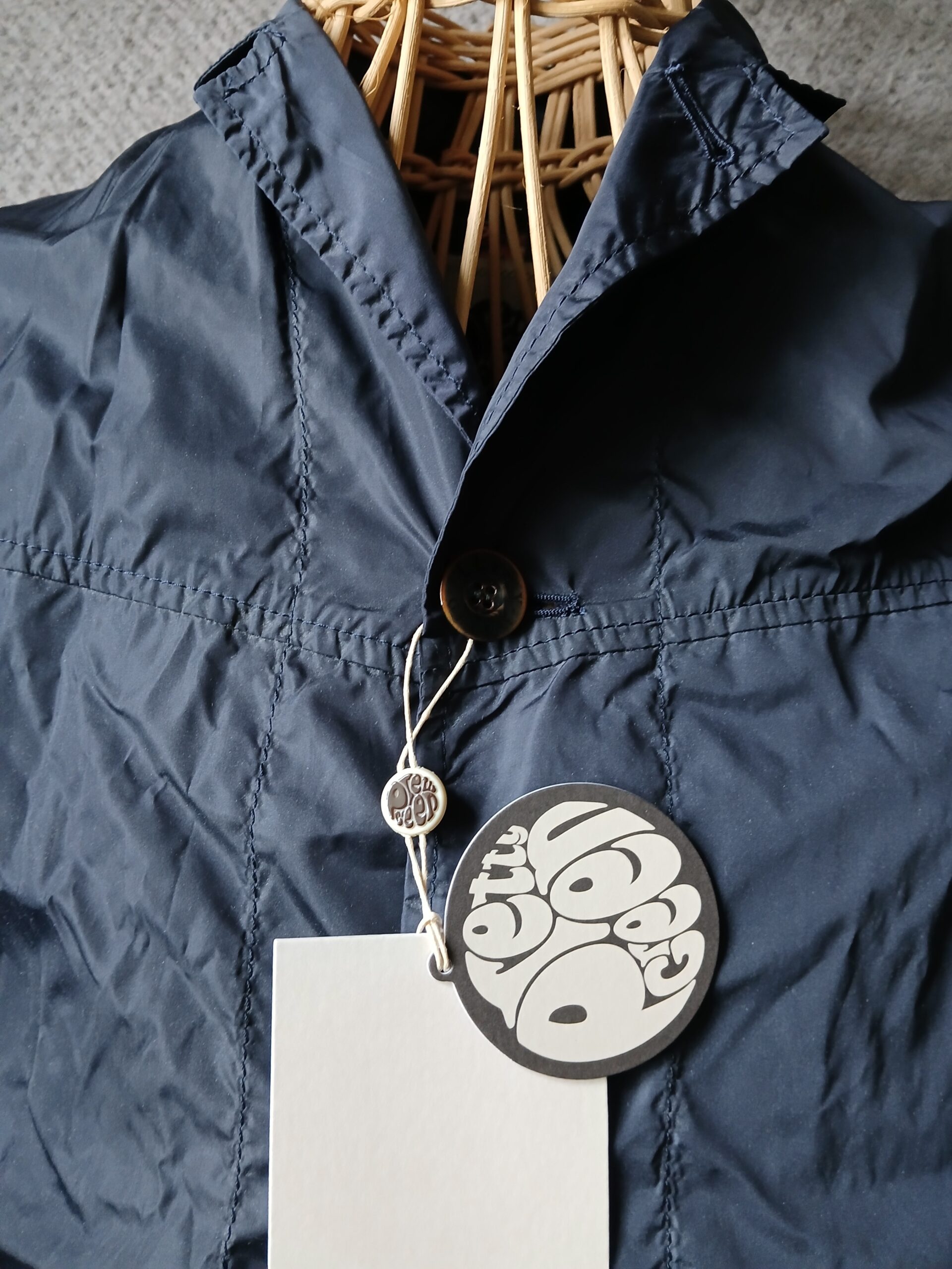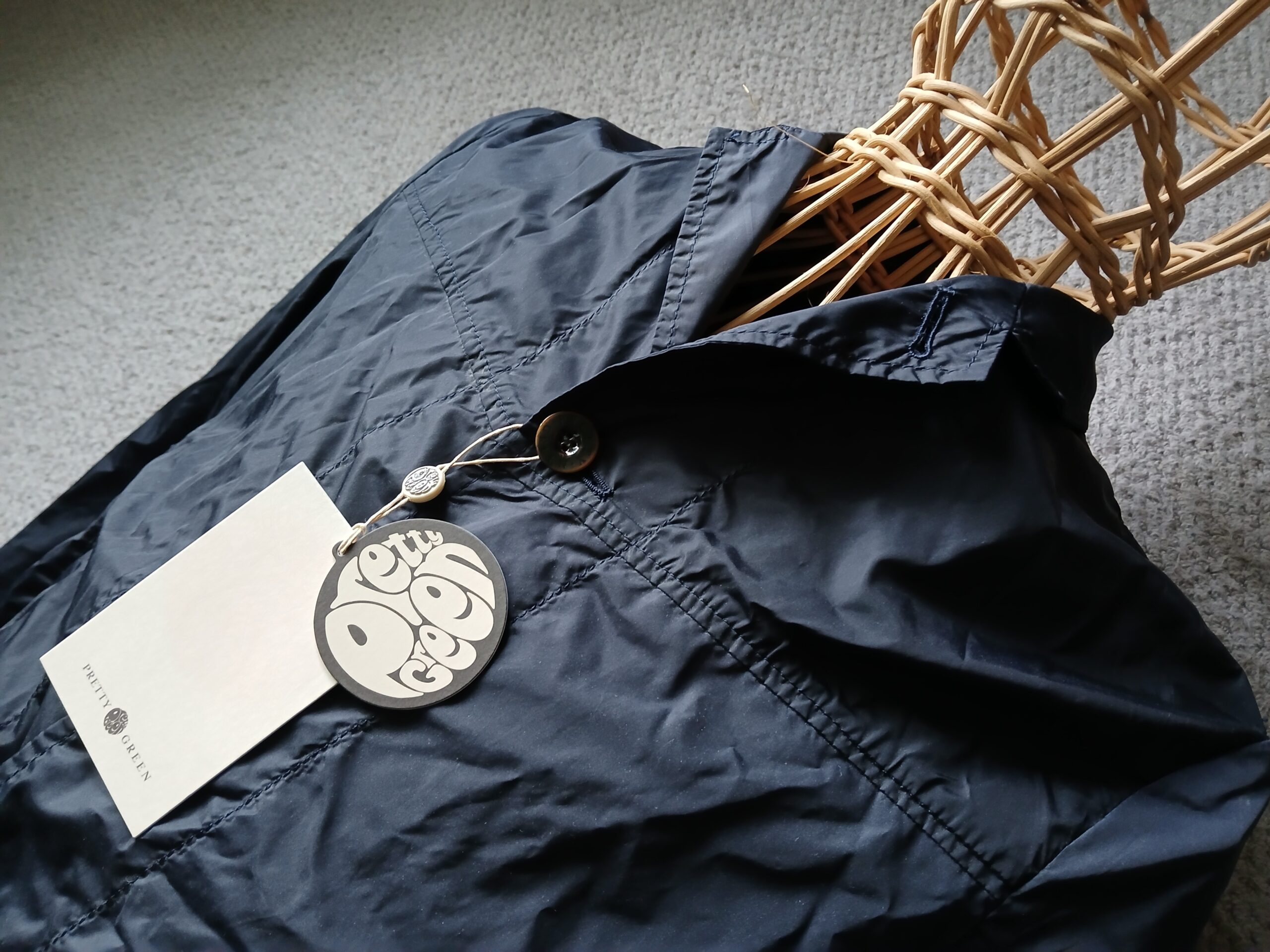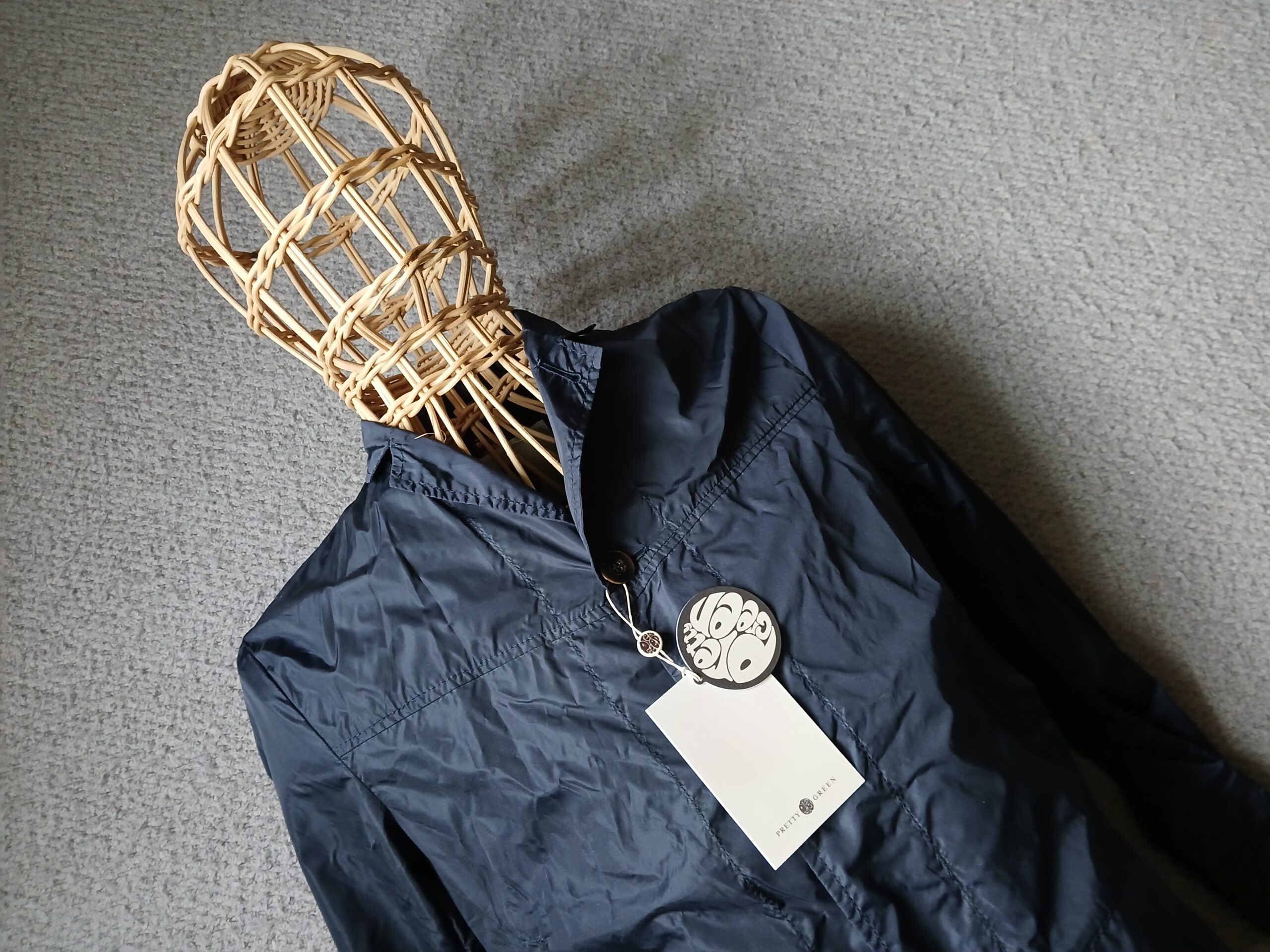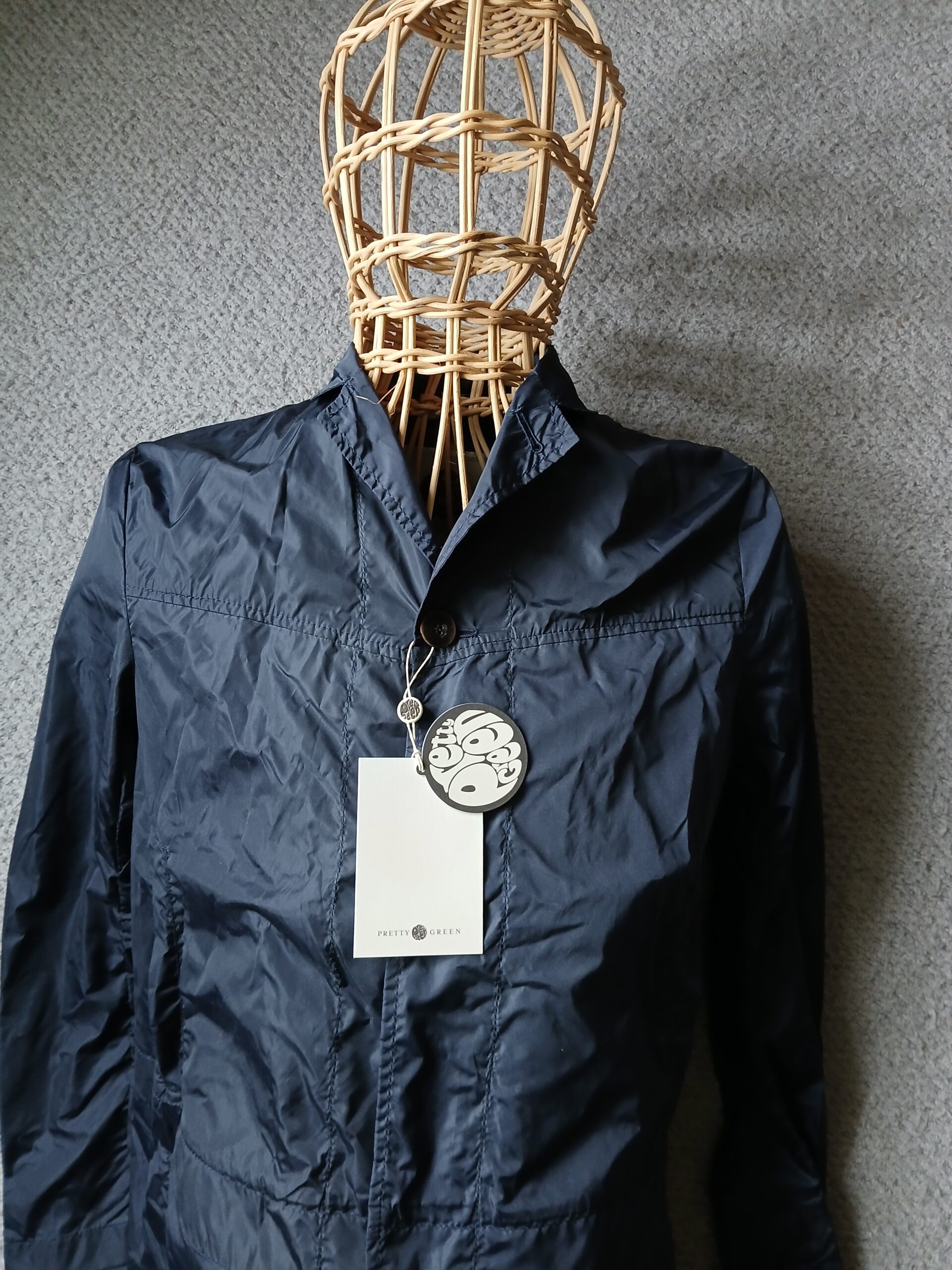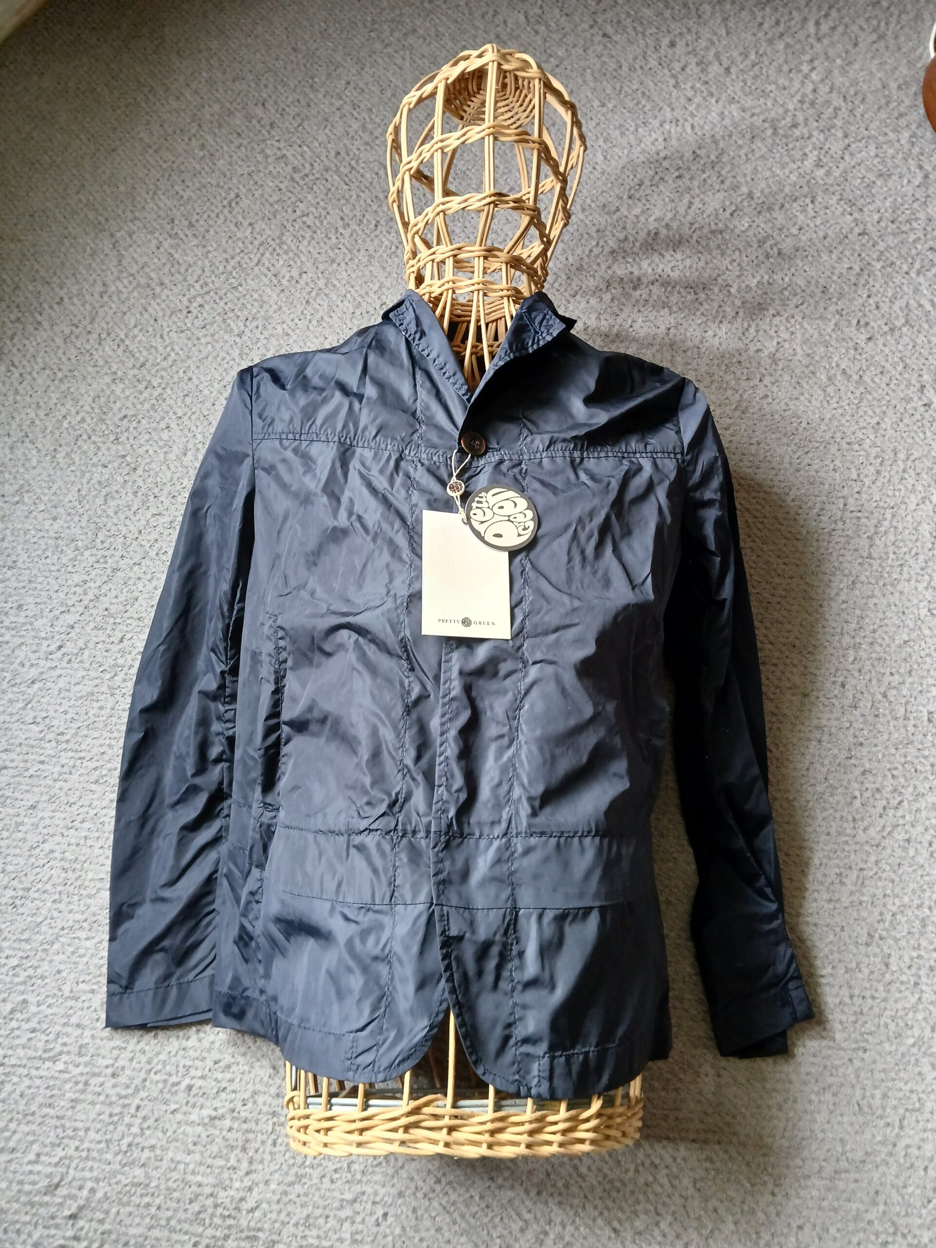 This Pretty Green shower jacket is in navy, and a small. Brand new deadstock once more, untouched by human hands… and a button up front. Super lightweight, coach jacket style. Nicely made with all the usual features. A bargain!